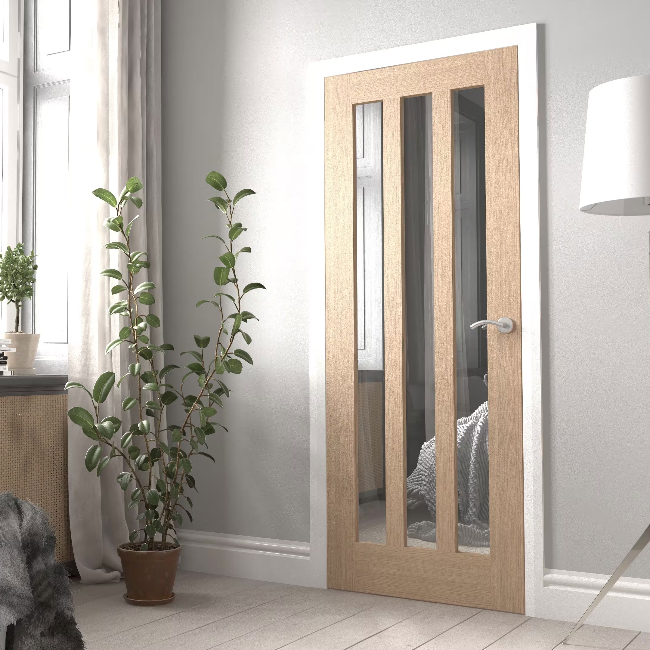 The Aston Oak Glazed Single Leaf Door combines timeless style with excellent value. Designed to match our popular Aston range, this clear glazed option has been introduced to maximise natural light between rooms while maintaining the bold, shaker-inspired look. Supplied unfinished for flexibility, each door features 4mm toughened clear glass panels and 20mm solid oak lippings, making trimming and adjustments straightforward. A durable, elegant choice at a highly competitive price.