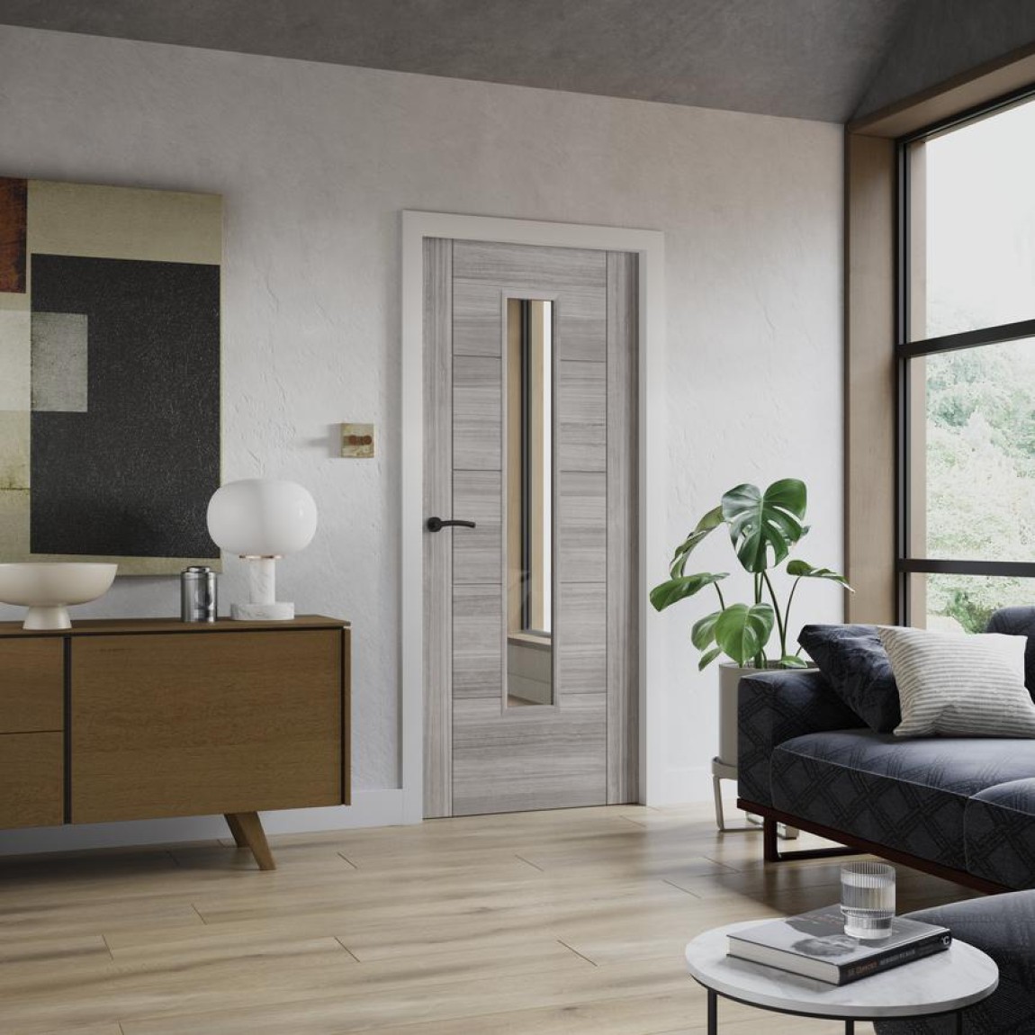 Continue the grey trend with the Daytona internal door, featuring a glazed panel to help light flow through your space.
