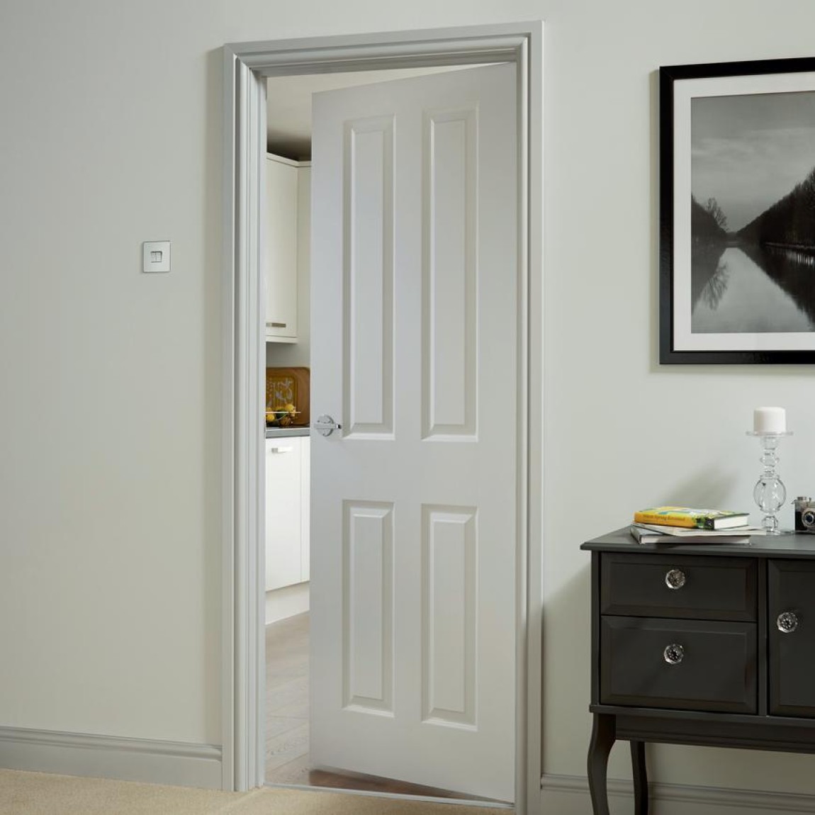 The four-panel design offers a timeless appeal, making it a great fit for both contemporary and traditional homes. Its moulded outer surface ensures a consistently flawless finish, while being economical and environmentally friendly. This construction is also more resistant to warping than solid wood, providing long-lasting durability. For enhanced accessibility, extra-wide versions are available to accommodate disabled access.