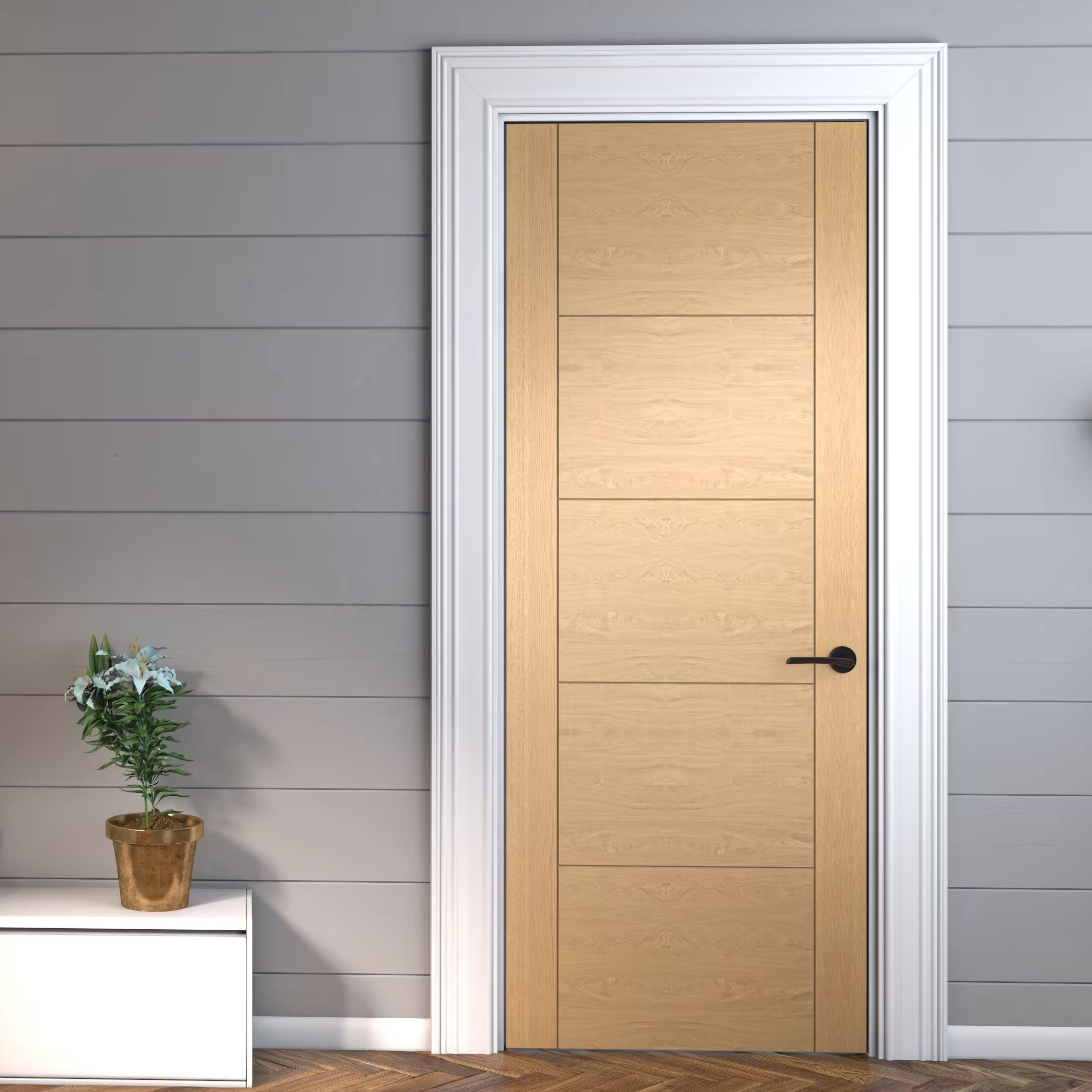 The Iseo Oak Prefinished Door is a contemporary internal door designed to give any space an instant lift. Constructed with a solid core for durability, it features distinctive “V” grooves and striking quarter-cut cross veneers that define the modern look of the range. Supplied prefinished, it’s ready to install straight away with no additional finishing required.
