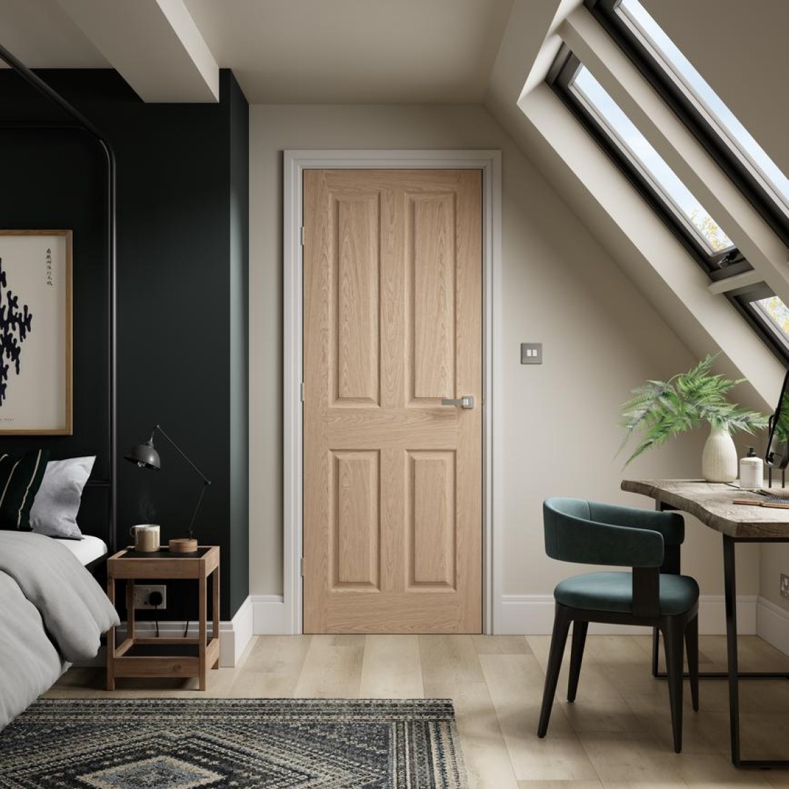 Introduce classic character to your home with this oak-veneered door from the Kennington collection, featuring a traditional 4-panel design.