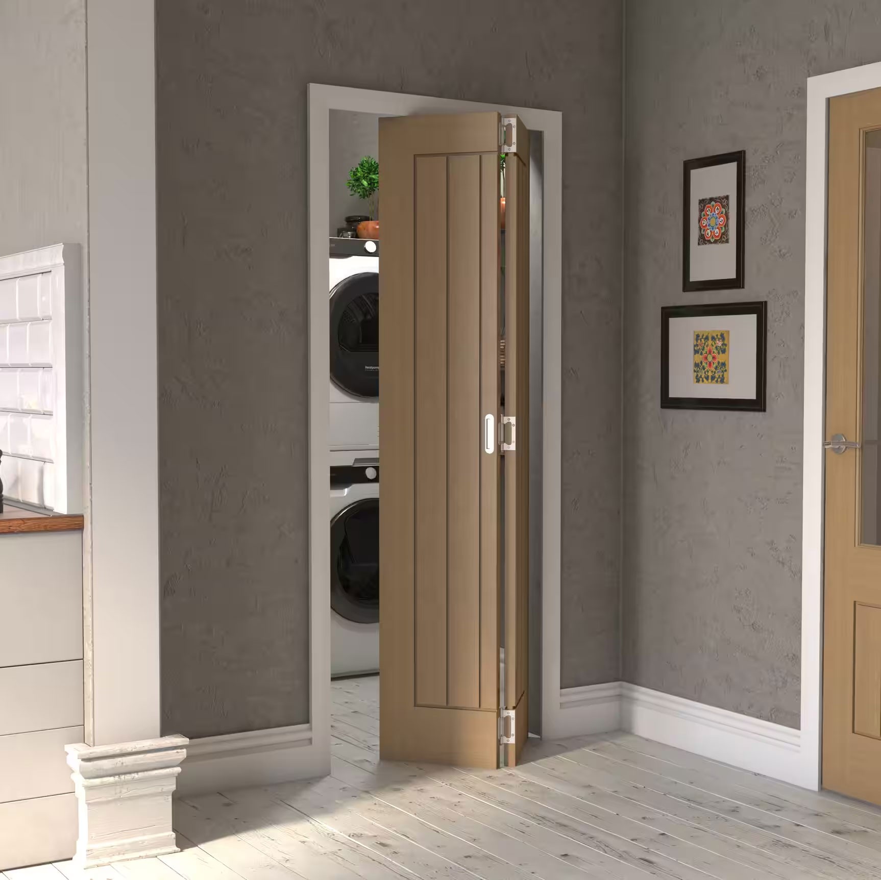 Our Mexicano Oak Bifold Doors combine rustic charm with contemporary design for a standout look. Perfect for maximising smaller spaces, they feature deep grooves and the rich tones of natural oak, adding both texture and character. Finished to a high standard, they bring style and quality to any interior.