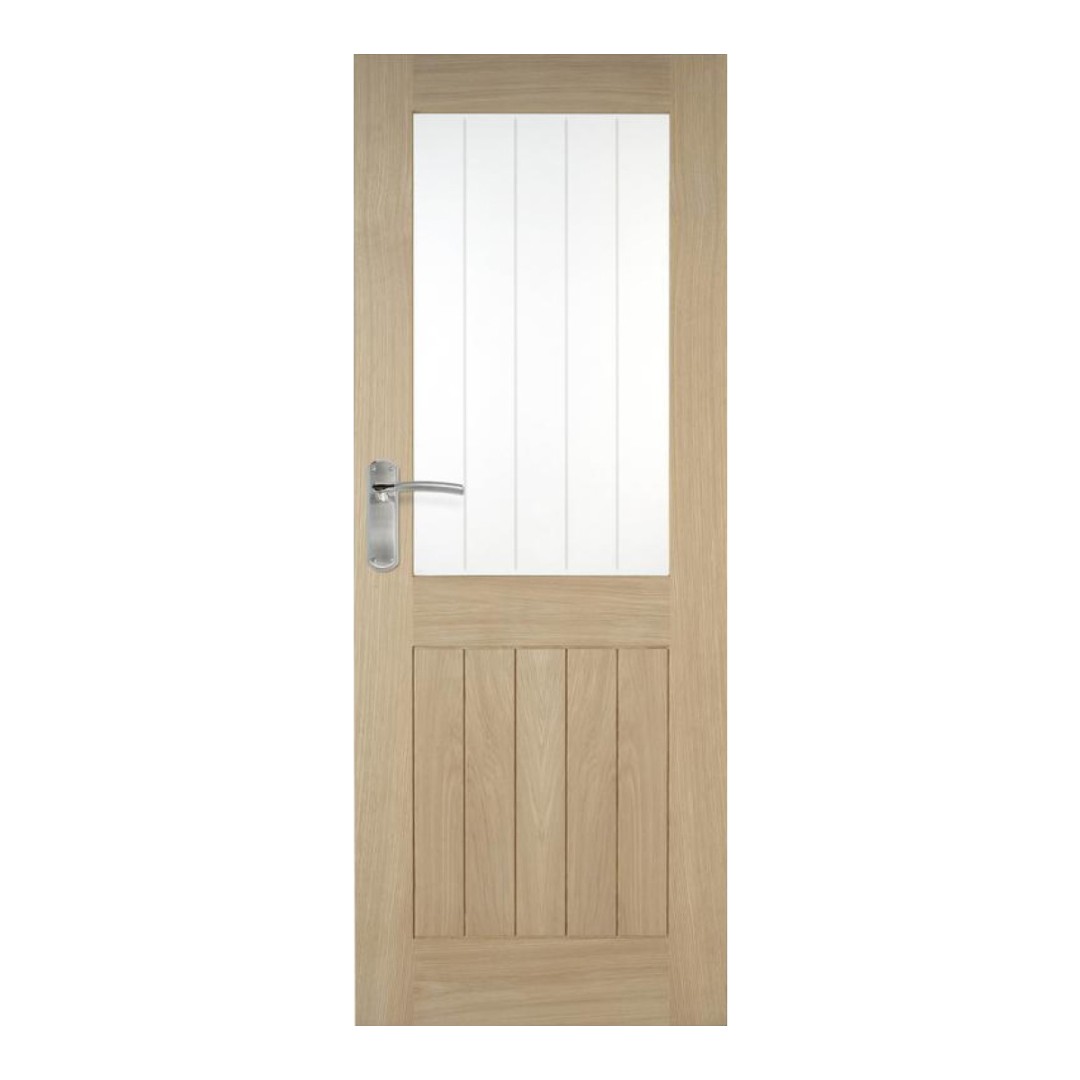 Brighten up north-facing or smaller rooms with this half-glazed door. Featuring an American white oak veneer with a charming cottage aesthetic, it can be given a modern twist by pairing it with a square rose door handle. Available in five sizes, it can be matched with an oak-veneered architrave for a cohesive look throughout your space.